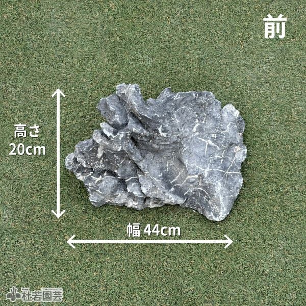 白くまだらに入った筋やくぼみを活かして苔庭や水際のメイン石として。