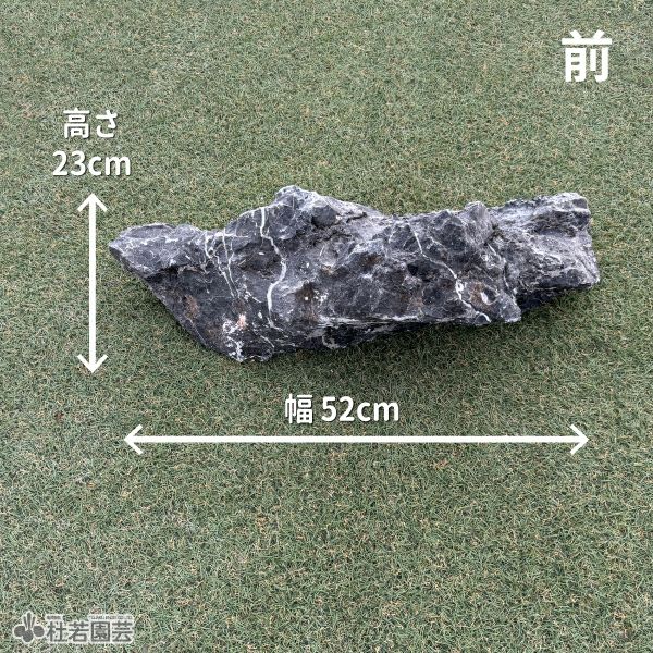 白くまだらに入った筋やくぼみを活かして苔庭や水際のメイン石として。