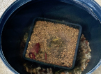 (1)鉢にカゴ植えの温帯スイレンを置きます。