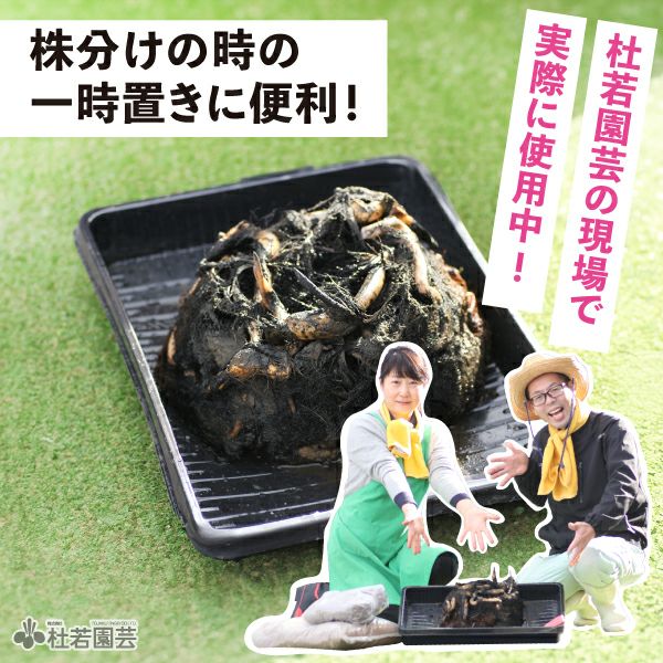 杜若園芸の現場でも実際に使用している、便利な作業用トレーです。植物の株分けや植え替え時の一時置きに最適。深さがあるので土や泥が広がっても安心、作業がしやすくなります。