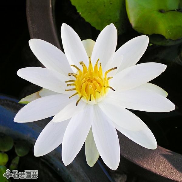 | 特性・用途 | 多年草の浮葉植物で浅水中に生育する植物。 大きな美しい花を咲かせるので、多くの品種が作られている。水面から飛び出すように花が咲き、葉には大きな切れ込みががあるのが特徴。温帯性スイレンの葉と比べると葉のふちに鋸歯(ギザギザ)がある。 熱帯性スイレンには、昼咲と夜咲品種があり、この品種は夜咲き品種。 |
